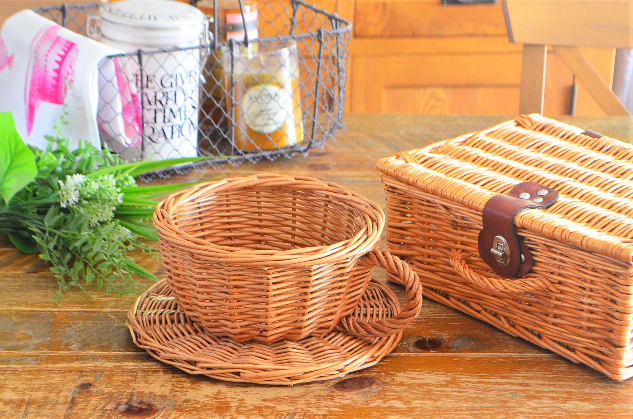 自然素材を使った製品のため編まれたツルの色により、バスケットの色が多少薄い・濃いことがございます。